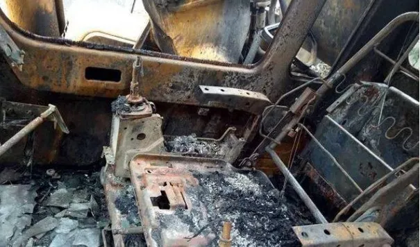 被烧的挖掘机驾驶室